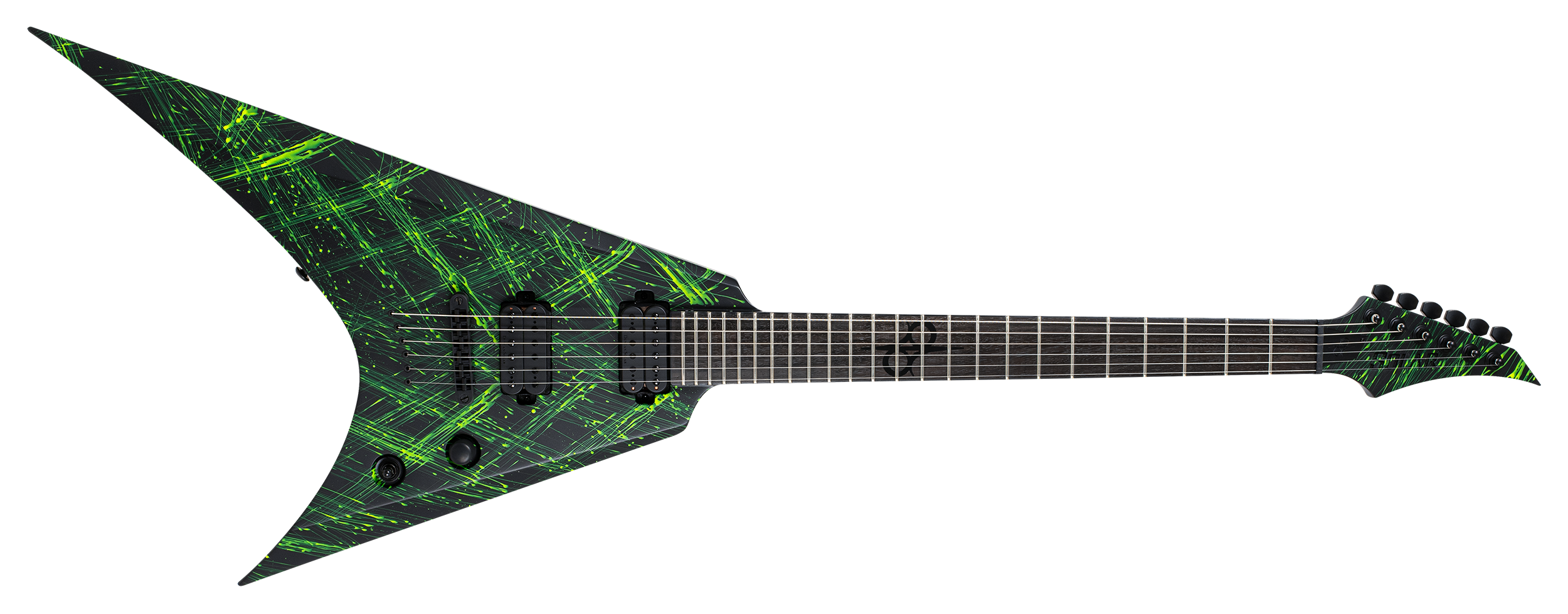A Type VAR2.6CLN Canibalismo faz parte da série V mais agressivamente metal já criada. Com seu visual distinto e discreto, além de seus recursos exclusivos, esta guitarra é um instrumento preciso e profissional, adequado tanto para palco quanto para estúdio. Equipada com uma ponte fixa com cordas passantes e captadores Duncan Solar que oferecem um espectro completo de opções tonais, desde timbres limpos e orgânicos até distorções pesadas, tudo com sustain fluido e máxima clareza. A Type VAR2.6CLN Canibalismo possui um design de junção do braço ao corpo com escala de 25,5”, um braço de maple fino, rápido e confortável, e uma escala de rosewood com 24 trastes super jumbo. Inclui também tarraxas Solar 18:1, nut PPS, ferragens pretas foscas, chave seletora de 3 posições para facilitar o acesso aos trastes. Esta guitarra está disponível na cor Lemon Neon Canibalismo fosca. Acompanha case rígido.