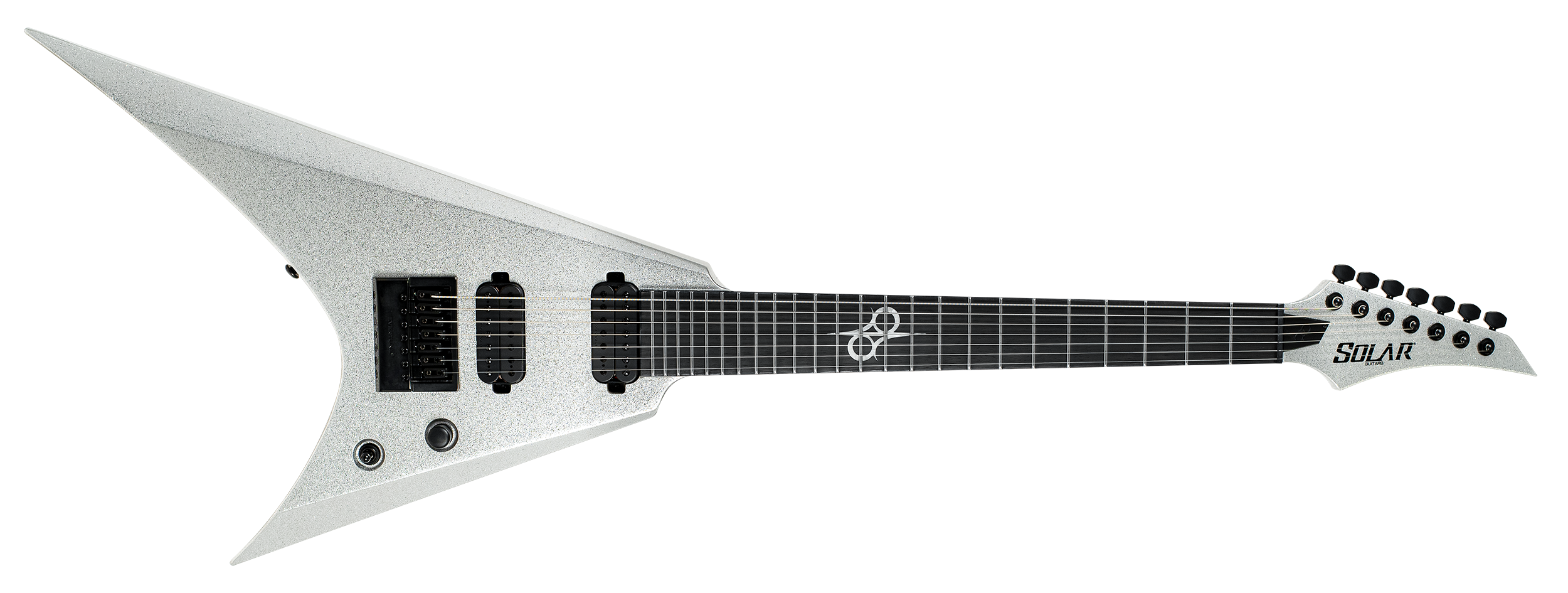 Esta guitarra de sete cordas Type VAR1.7SP vai te destacar de todos os outros. Com seu visual discreto e marcante e conjunto de recursos, esta guitarra é um instrumento preciso e profissional, adequado tanto para palco quanto para estúdio. Esta guitarra possui a ponte Evertune® de tensão constante — um sistema mecânico confiável que mantém a guitarra afinada em qualquer circunstância. Ela também conta com captadores Duncan Solar que oferecem um espectro completo de opções tonais, desde timbres limpos e orgânicos até distorções pesadas, tudo com sustain fluido e máxima clareza. A Type VAR1.7SP apresenta uma construção com junção do braço ao corpo (set-thru neck/body join), escala de 25,5”, corpo em alder, braço em maple fino, rápido e confortável, escala em ébano com 24 trastes super jumbo em aço inoxidável e marcadores laterais Luminlay que brilham no escuro para uso no palco. Equipada com tarraxas Solar com trava 18:1, nut PPS, chave seletora de captadores de 3 posições, potenciômetro de volume único e acesso total ao braço. Disponível na cor prata brilhante (sparkle goss), acompanha um estojo rígido Solar Type VAR.